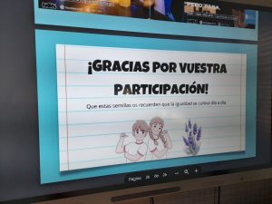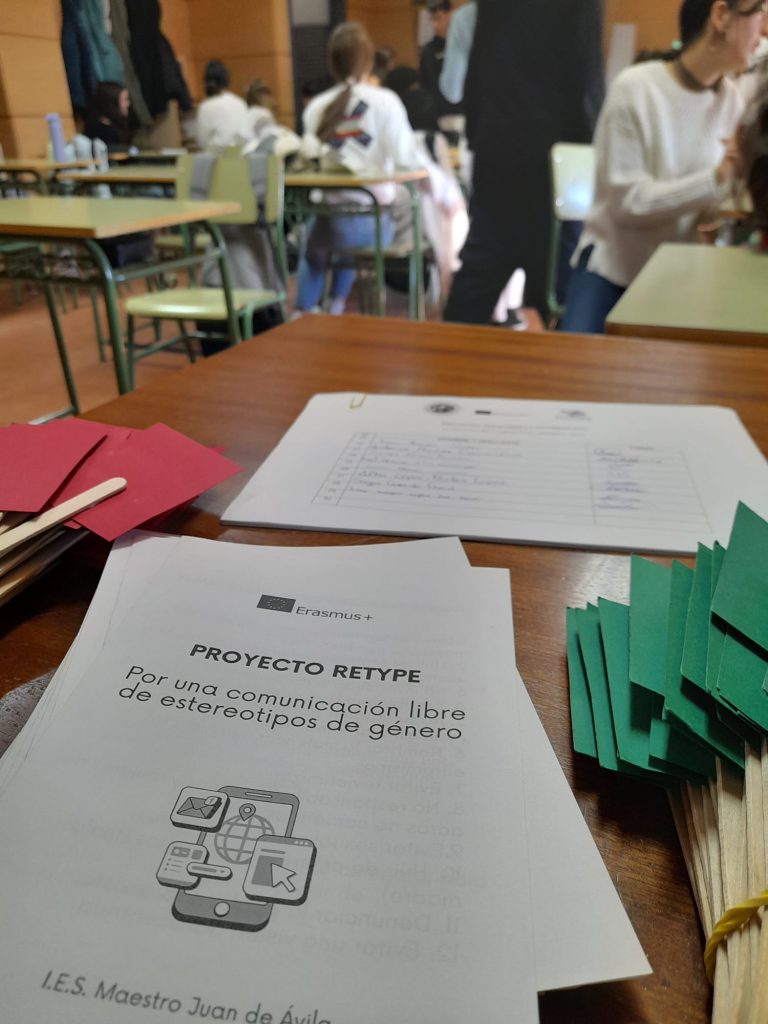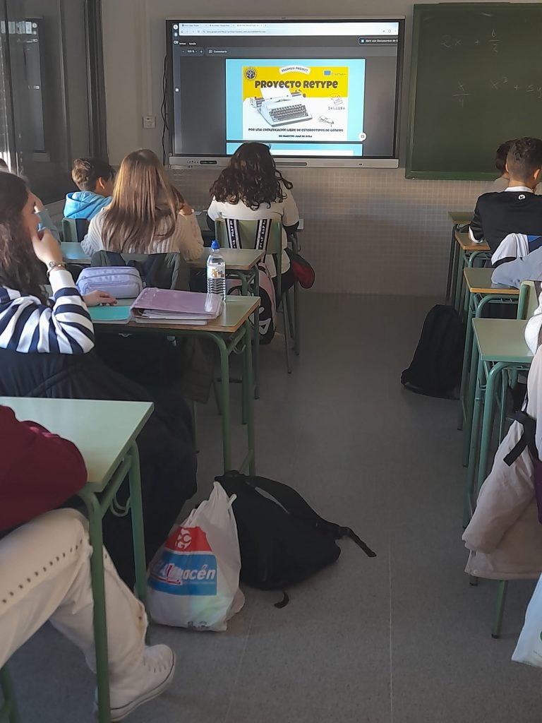 La segunda actividad del proyecto RETYPE sobre reescribir la información sin sesgos de género nos ha llevado a impartir seis talleres al alumnado de 2º ESO del IES Maestro Juan de Ávila en Ciudad Real, España. Durante cada sesión, tanto estudiantes como profesorado, han analizado la situación de la prensa en términos de igualdad, se han puesto las gafas moradas para analizar titulares reales de prensa con perspectiva de género, hemos debatido sobre el papel de la publicidad y las redes sociales. Los talleres han sido muy participativos, ha sido muy interesante conocer la valoración que el alumnado hace de los medios de comunicación en términos de igualdad y también el profesorado y la orientadora han contribuido muy positivamente en el desarrollo de los talleres.